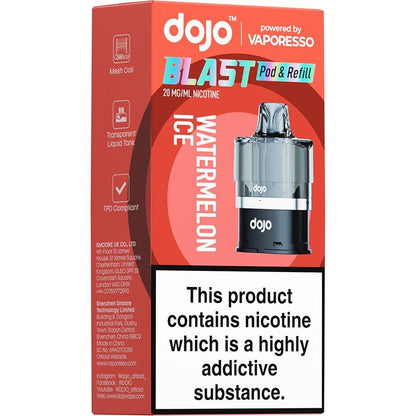 Keep your DOJO BLAST 6000 vaping experience fresh and flavourful with the Prefilled Pod & Refill Pack. Designed for convenience and ease of use, this pack includes a 2ml prefilled pod and a 10ml e-liquid refill bottle, both filled with 20mg nic salt e-liquid.